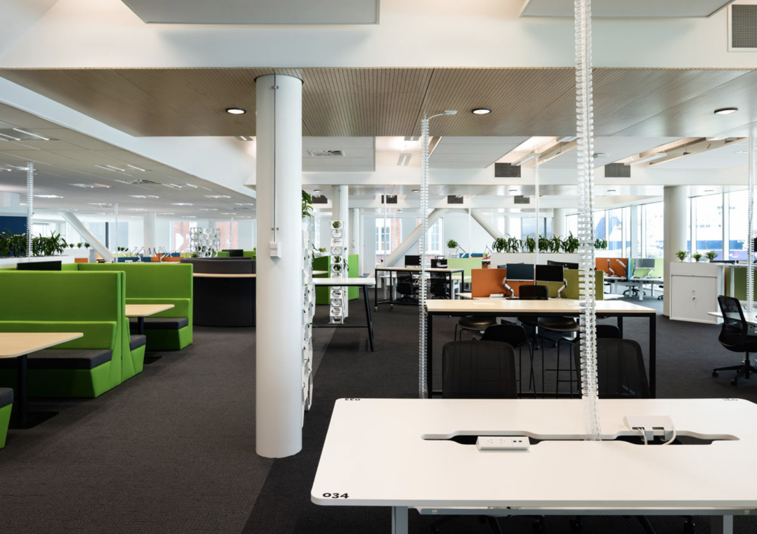 Am neuen Standort in Wellington wollte FMG Insurance einen Arbeitsplatz gestalten, der den Ambitionen des Unternehmens entsprach: Innovativ sein und Marktführer bleiben. So wurde ein flexibler Arbeitsbereich entwickelt, mit gemeinsam genutzten Räumen für Teams und Gemeinschaftsräumen für alle. Dabei kam es vor allem auf die Einrichtung an.