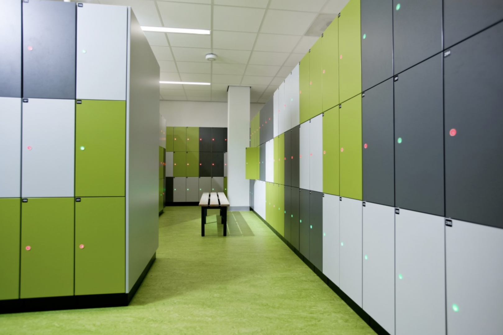 Wir durften unser Schließfachsystem mit Passbedienung installieren. Die Mitarbeiter wählen jeden Tag beim Betreten ihren eigenen Spind. So sind diese nicht ständig besetzt. Und weil die Schränke drei Stockwerke haben, kommen sich die Mitarbeiter nicht in die Quere. Ein sehr effizientes Design!