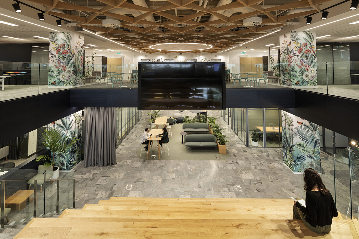 To answer this question, Warren and Mahoney looked to the past for inspiration and developed a concept around the formal ancient gardens, the heart of many towns and cities around the world. Gardens have attracted people to them for thousands of years. Whether it to be to find calm and rejuvenation, to be inspired by the beauty of nature, or to socially connect. In using this framework for the design of ANZ Raranga, they were able to create a workplace that would provide reprieve in a busy urban environment, instil pride and inspire people to do their best work, and help to cultivate community and collaboration among staff.