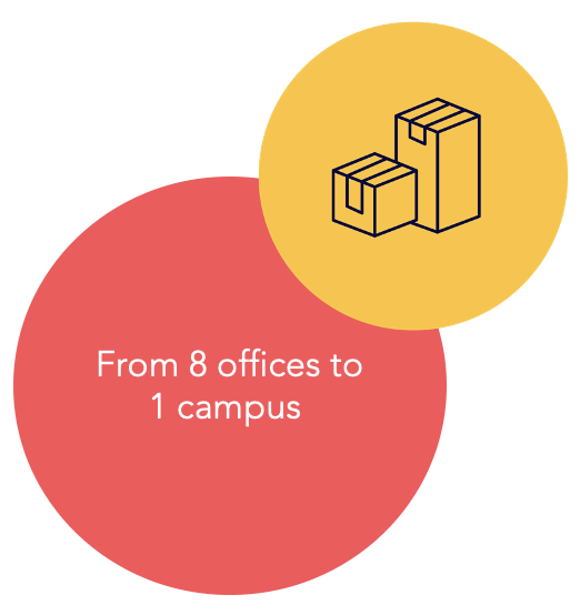 - From 8 sites to 2 buildings on 1 urban campus of 900,000 square feet