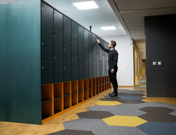 Pour utiliser pleinement le potentiel de la formule basée sur les activités, Cybercom a choisi la solution de gestion des casiers Vecos, fournie par notre partenaire Martela Dynamic. L’objectif global de Cybercom est que les employés se sentent à l’aise et chez eux, peu importe l’endroit où ils travaillent au bureau. Les solutions entièrement personnalisées pour le stockage et les postes de travail permettent aux employés de travailler sans souci. Avec une carte d’accès, les employés choisissent l’espace de rangement et le bureau, réglable électriquement pour une utilisation ergonomique optimale, qui conviennent le mieux à la situation.