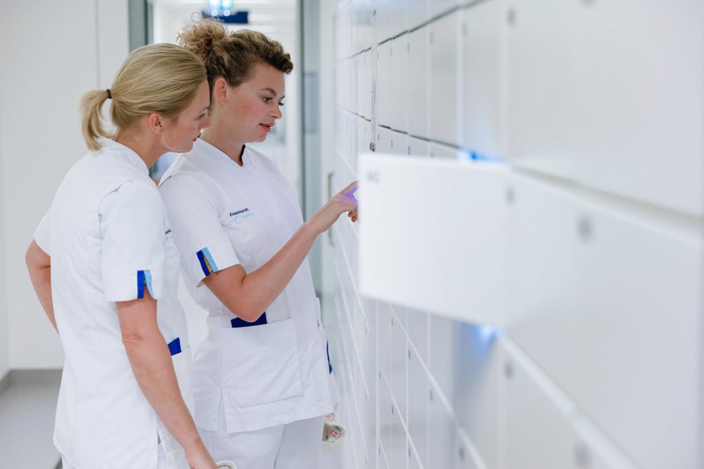 Le personnel hospitalier travaillant selon un système de rotation, les casiers dans les hôpitaux sont utilisés par plus d’une personne au cours de la journée. Cela signifie plus de contacts humains et plus de risques de contamination. Les casiers Vecos disposent de portes s’ouvrant par simple pression et qui n’ont donc pas de poignées. Grâce à leurs surfaces lisses, les casiers sont faciles à nettoyer et très hygiéniques, ce qui est essentiel dans les hôpitaux. Notre système de gestion des casiers permet également de configurer les casiers de manière à ce qu’ils puissent être attribués à une distance d’1,80 mètres, favorisant ainsi la distanciation sociale, ou attribués automatiquement à un membre du personnel de nettoyage après chaque utilisation.