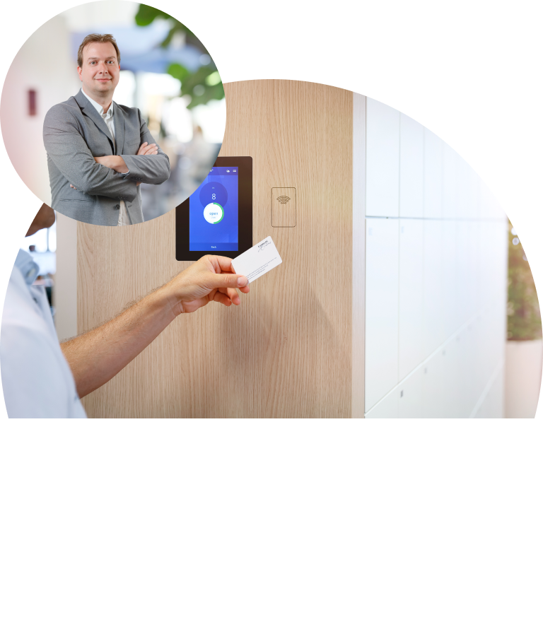 Le personnel peut sélectionner et accéder à un casier avec le badge d’accès personnel et à l’aide de notre application smartphone. L’ouverture et la libération d’un casier peuvent donc être effectuées de manière sûre et facile par l’utilisateur, mais également à distance par le gestionnaire. Lorsque, par exemple, une restriction temporelle est appliquée à l’utilisation du casier, l’utilisateur ou l’utilisatrice est automatiquement averti(e) de la fin de son service
