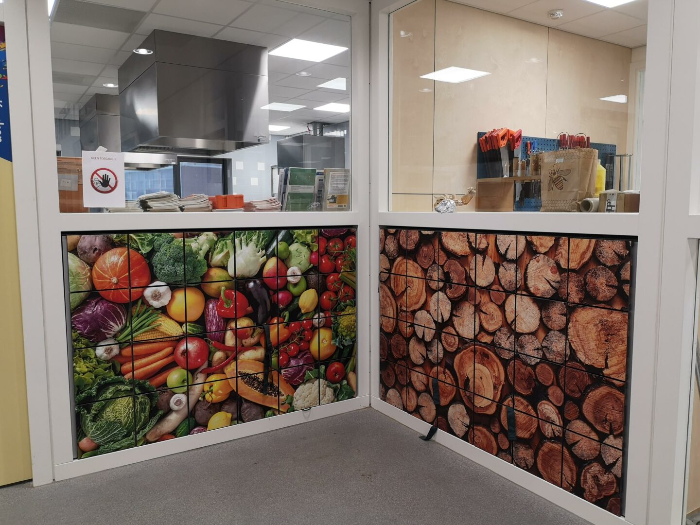 In de nieuwbouw van Praktijkschool De Brug hebben de leerlingen boven theorie lessen en beneden de praktijklokalen. Dichtbij de lokalen zijn de lockers geplaatst, welke voor de praktijklessen in het thema van het betreffende vak zijn gesublimeerd. Elke student heeft een kluisje voor de theorievakken nodig en een kluisje voor de praktijkvakken.