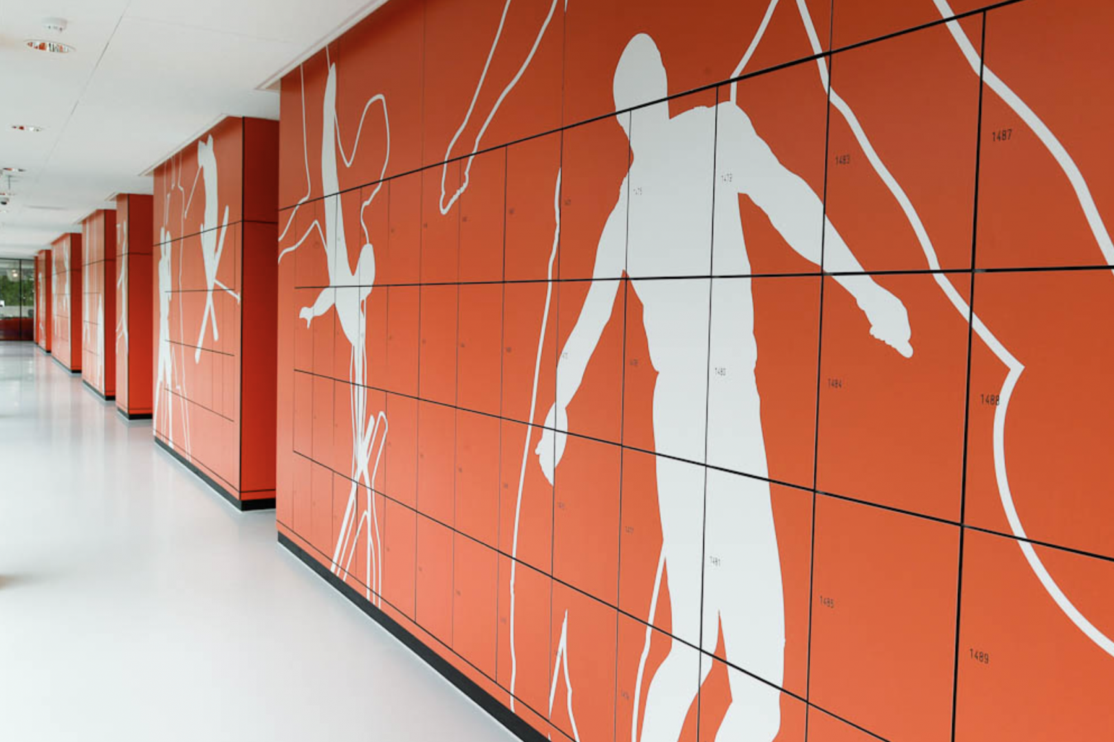 De lockers van Fontys zijn een echte eyecatcher. Bij binnenkomst zie je ze direct staan in de enorme ruimte. Maar liefst 1.700 lockers die met de schoolpas worden bediend. En greeploos, zodat de afbeeldingen nog beter uitkomen.